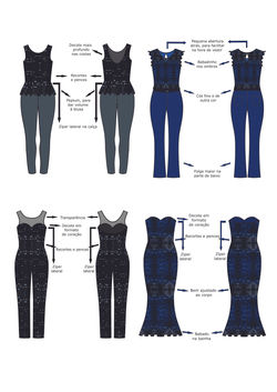 Todas as estampas foram feitas a partir da técnica do espelhamento, aprendido nas aulas de padronagem II, para que a coleção tivesse um diferencial.